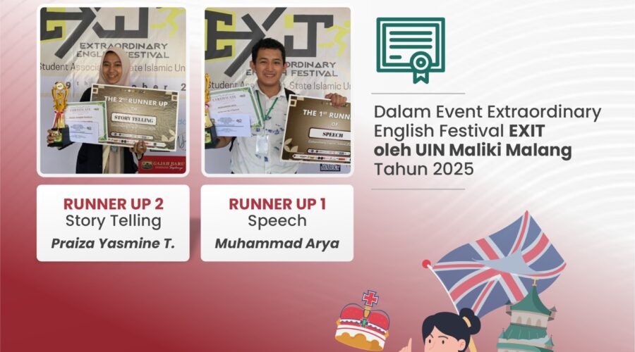 Kab. Malang (MAN 1 Malang) – Dua siswa MAN 1 Malang kembali menorehkan prestasi membanggakan dalam ajang EXIT 2025 (English eXhibition and Interactive Tournament) yang diselenggarakan oleh Fakultas Humaniora Universitas Islam Negeri (UIN) Maulana Malik Ibrahim Malang. Kegiatan ini berlangsung pada tanggal 19 Oktober 2025, di kampus UIN Maulana Malik Ibrahim Malang, Jl. Gajayana No. 50, Dinoyo, Kota Malang. Ajang tahunan tersebut diikuti oleh ratusan peserta dari berbagai SMA dan...Read More