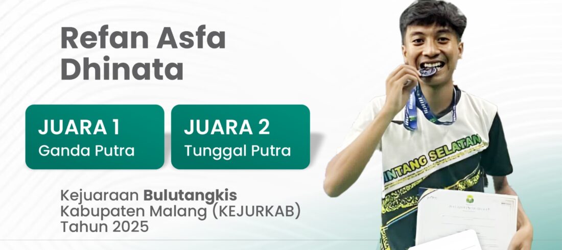 Kab. Malang (MAN 1 Malang) —Prestasi membanggakan kembali diraih oleh salah satu siswa Madrasah Aliyah Negeri (MAN) 1 Malang. Refan Asfa Dhinata, siswa berprestasi dari madrasah ini, berhasil meraih Juara 1 Ganda Putra dan Juara 2 Tunggal Putra dalam Kejuaraan Bulutangkis Kabupaten Malang (KEJURKAB) Tahun 2025 yang digelar di Gor Bulutangkis Gondanglegi, Kabupaten...Read More