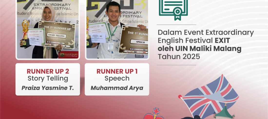 Kab. Malang (MAN 1 Malang) – Dua siswa MAN 1 Malang kembali menorehkan prestasi membanggakan dalam ajang EXIT 2025 (English eXhibition and Interactive Tournament) yang diselenggarakan oleh Fakultas Humaniora Universitas Islam Negeri (UIN) Maulana Malik Ibrahim Malang. Kegiatan ini berlangsung pada tanggal 19 Oktober 2025,...Read More