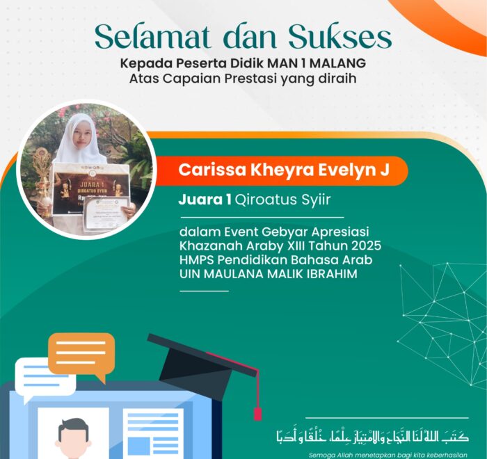 SISWI MAN 1 MALANG RAIH JUARA 1 QIROATUS SYI‘IR TINGKAT NASIONAL
